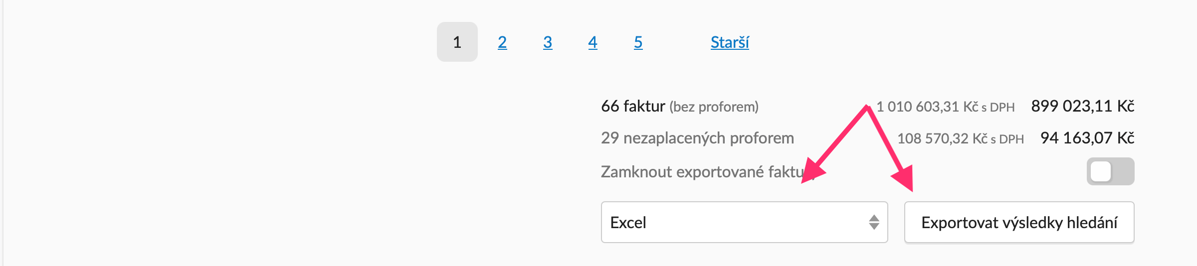 Potřebujete vytisknout všechny doklady nebo přehled faktur/nákladů podle různých parametrů? Můžete toho jednoduše docílit skrze vyhledávání přes "lupu" v horní liště. Zvolte, zda vyhledáváte Faktury nebo Náklady, zadejte požadované parametry a potvrďte vyhledávání. Poté na konci seznamu vyberte požadovaný formát (formát PDF pro tisk nebo například Excel , exportujte výsledky hledání. Soubor se stáhne do vašeho počítače, odkud jej můžete snadno vytisknout.